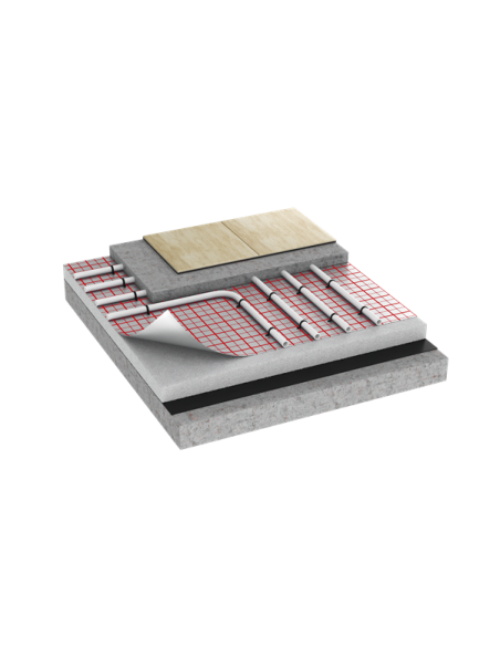 Folia Eurovent ALUFLOOR to folia pod ogrzewania podłogowe, termoizolacyjna, metalizowana jednostronnie. Zalecana jako warstwa izolacyjna pod ogrzewanie podłogowe, panele podłogowe oraz warstwa izolacyjna pod i za elementy grzewcze. Skutecznie zatrzymuje parę wodą i odbija promieniowanie cieplne. Specjalnie nadrukowana kratka na całej powierzchni folii ułatwia montaż instalacji grzewczej.